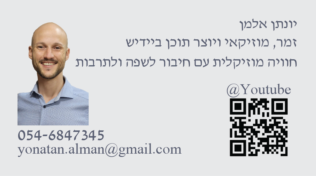 אני יונתן אלמן – זמר, מוזיקאי ואמן יוצר תוכן ביידיש מוביל מופעים שמשלבים שירה ונגינה חיה, הומור וסיפורים.
